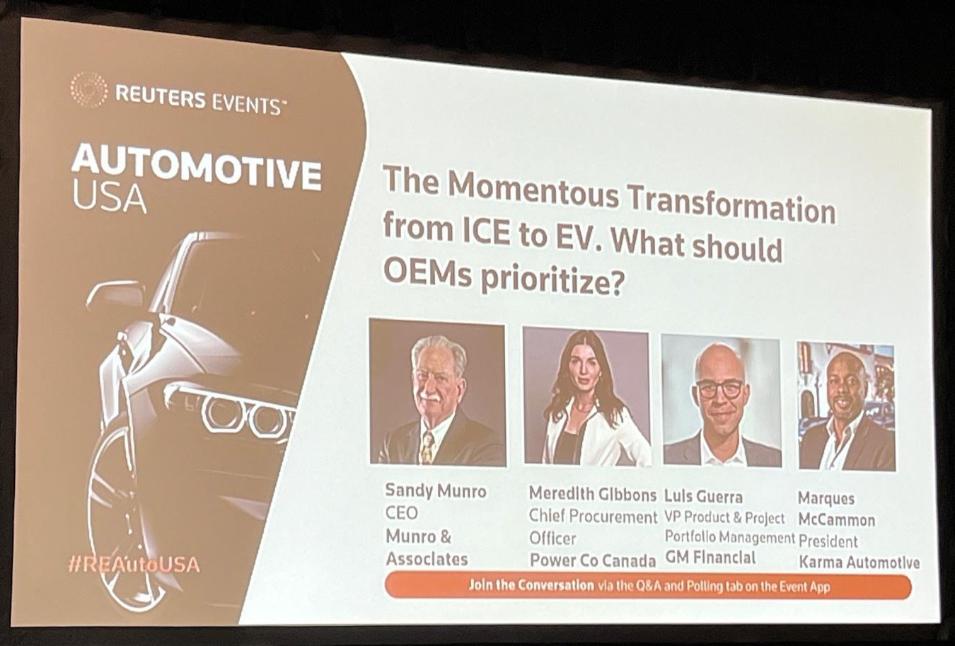 Cunoscutul Sandy Munro a moderat mai multe discuții pe tema tranziției, din care a fost clar că atenția producătorilor este orientată spre informarea și educarea dealerilor, dar nu și a potențialilor clienți. In stilul caracteristic, foarte direct, Sandy a făcut câteva afirmații memorabile, extrem de apropiate de spiritul proiectului Electromobilitate: