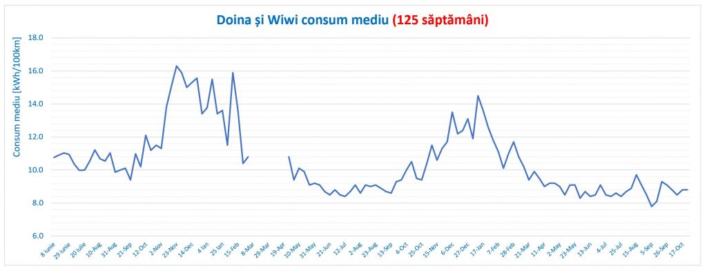 - Medie consum energie bord: 10.8 kWh/100 km (10-16 oct);