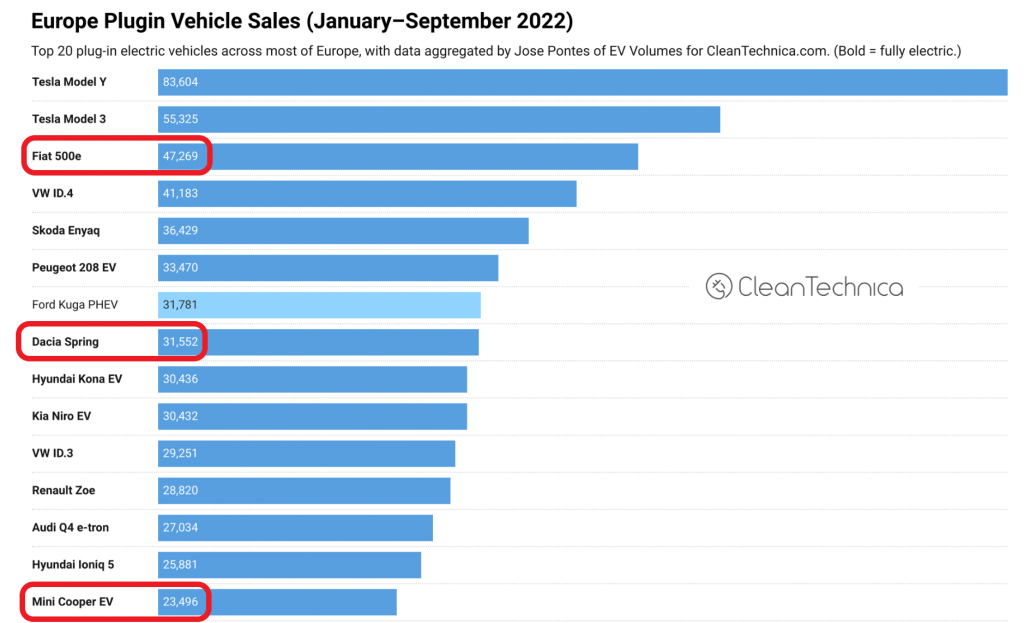 Acolo unde modele mini sunt disponibile, publicul reacționează prompt cu achiziții în număr mare, limitate doar de capacitatea de livrare. Găsim dovada cea mai clară pentru această realitate în clasamentul european de înmatriculare din primele nouă luni, compilat de Jose Pontes pentru Clean Technica.
