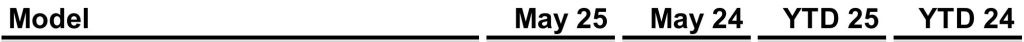Pentru Model Y tranziția la o nouă variantă explică așteptarea clienților pentru ”Juniper”. Odată începute livrările de la Berlin pe scară largă, diferența față de luna mai 2024 este de -7.5%, o pilulă amară de înghițit pentru cel mai bine vândut model electric pe plan global.