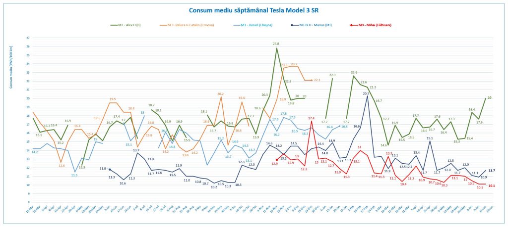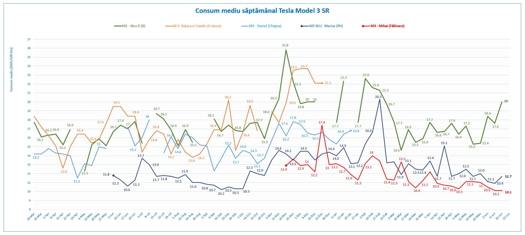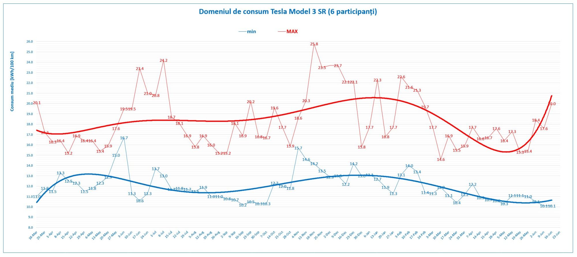 Datele pentru aceasta saptamana (Tesla Model 3 SR+ 55kWh) sunt următoarele:
