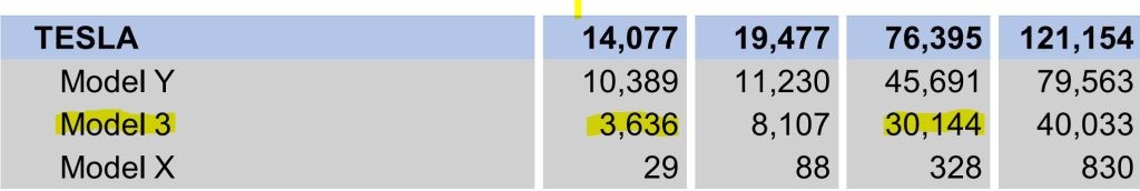 Model 3 în schimb, în al șaselea an de prezență pe piața din Europa și al optulea de la lansare, este afectat (pe lângă vârsta înaintată în lumea cu evoluție rapidă a electricelor) de taxele protecționiste aplicate automobililor asamblate în China. Rezultatul din primele cinci luni este o scădere cu aproape un sfert (-24.7%) a înmatriculărilor europene față de aceeași perioadă de anul trecut.