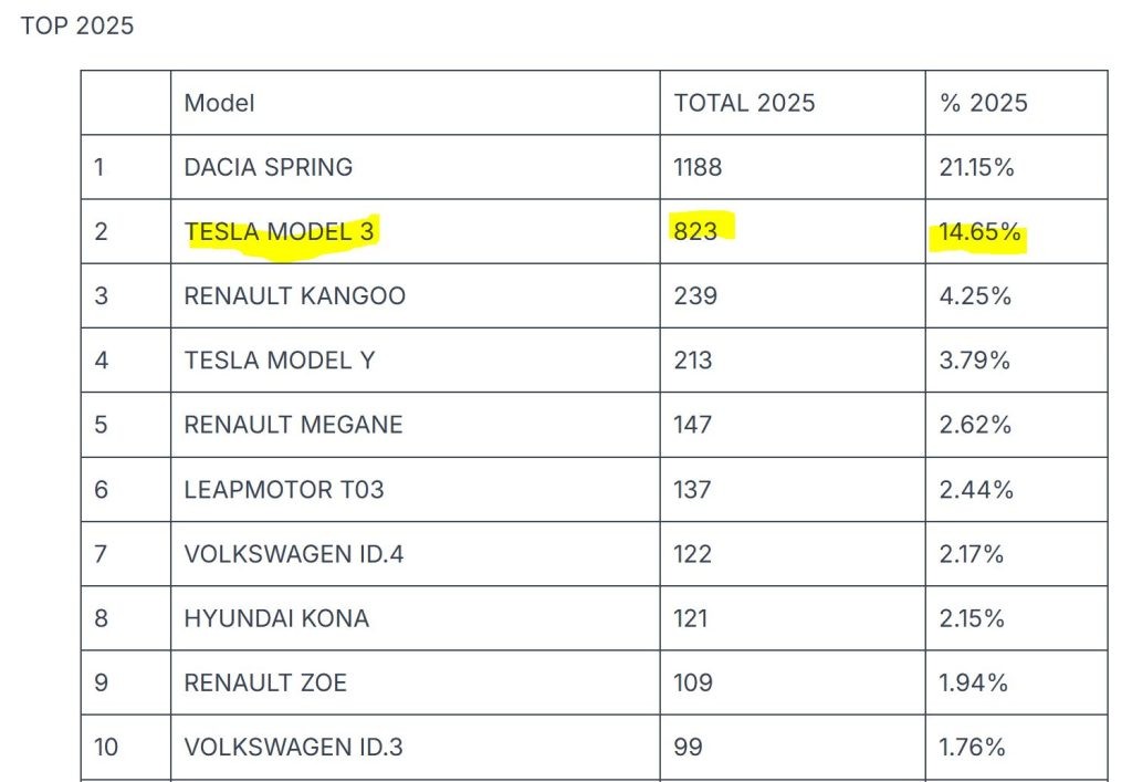 Înmatriculări Model 3 în România