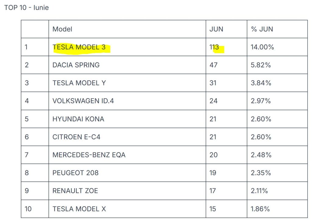RO e-Mobility index pentru luna iunie, publicat de colegul nostru Tudor (IONIQ 5, Timișoara), indică cum printre ”piedici și întârzieri” Model 3 a urcat pe primul loc al înmatriculărilor din iunie și rămâne pe locul 2 după prima jumătate a anului.