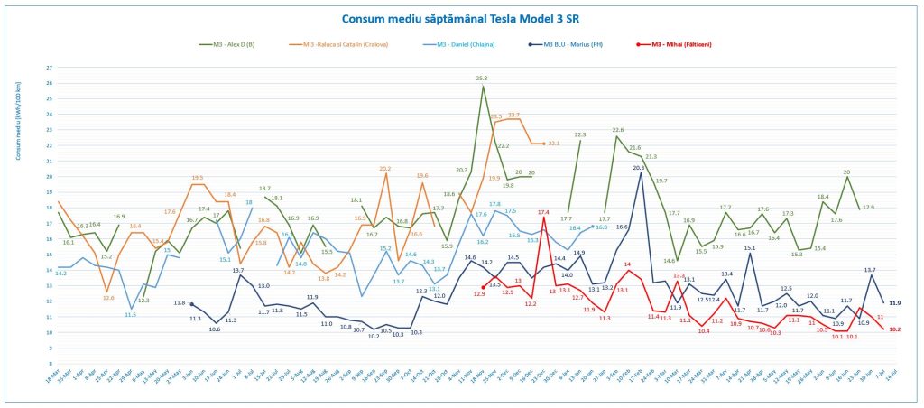 Sezonul vacanțelor se manifestă prin două extreme ale distanțelor parcurse de colegii nostri cu diferitele variante de Model 3:
