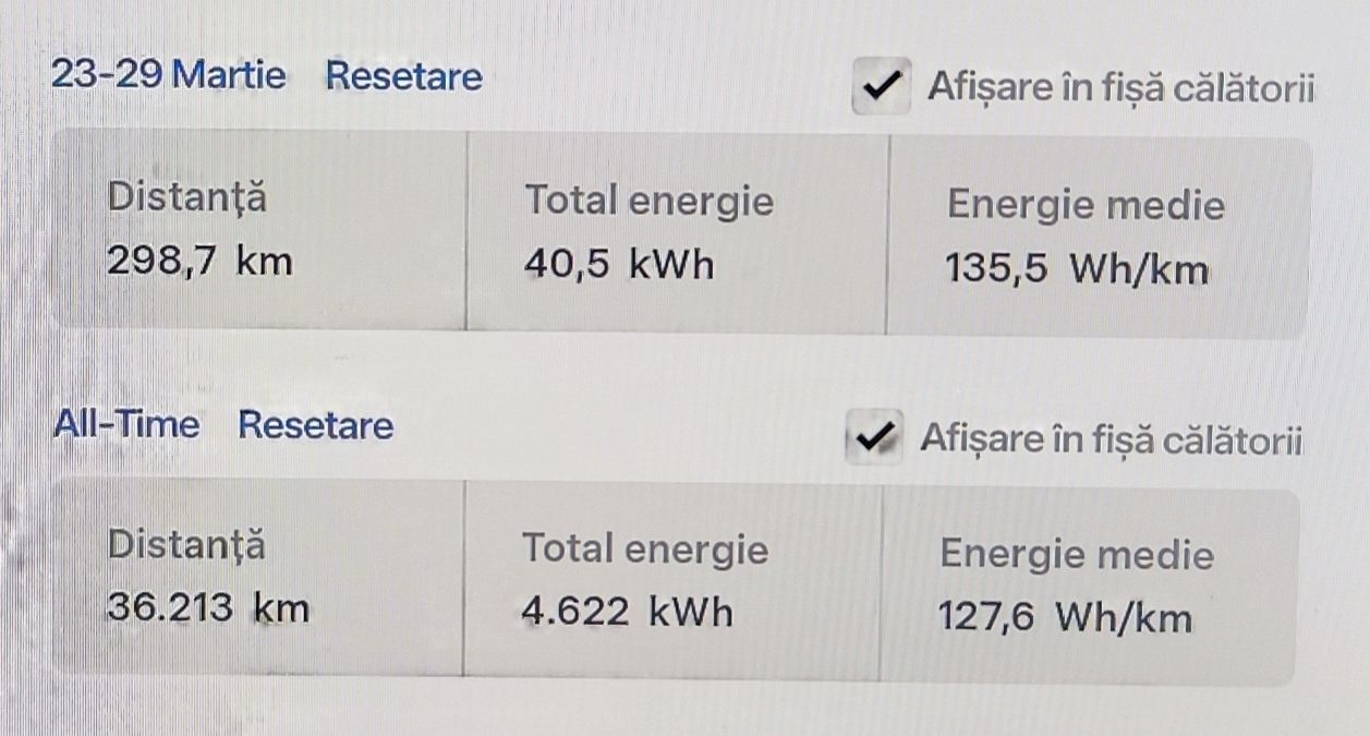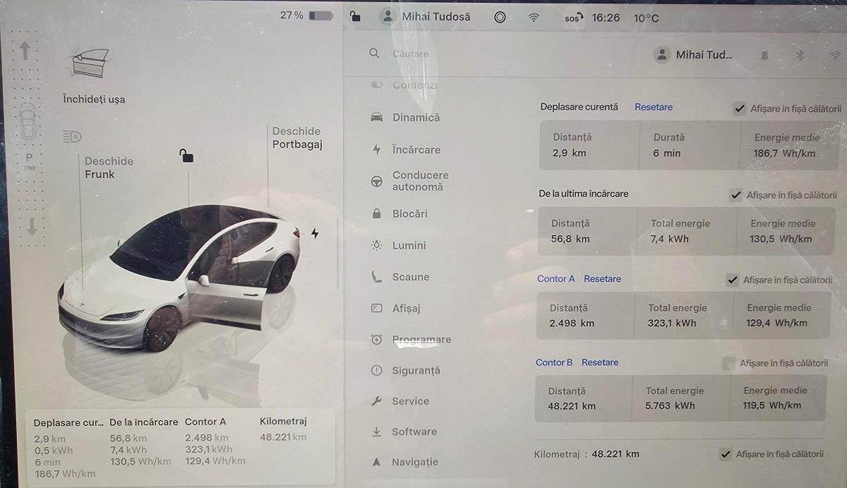 - Energie consumată în Park: 41.3 kWh (Precondiționare, Vehicul în așteptare, Ecran, Sentry)