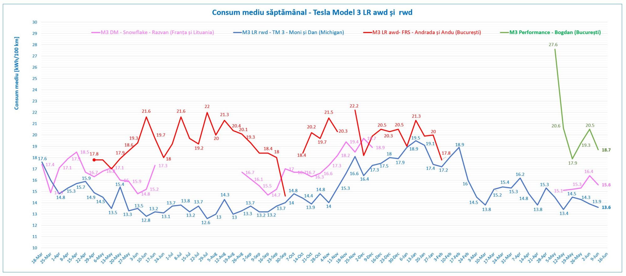 Ce este posibil cu TM 3 LR din 2018 la peste 173.000 km, din punct de vedere al eficienței, indică clar valoarea de 12.3 kWh/100km.