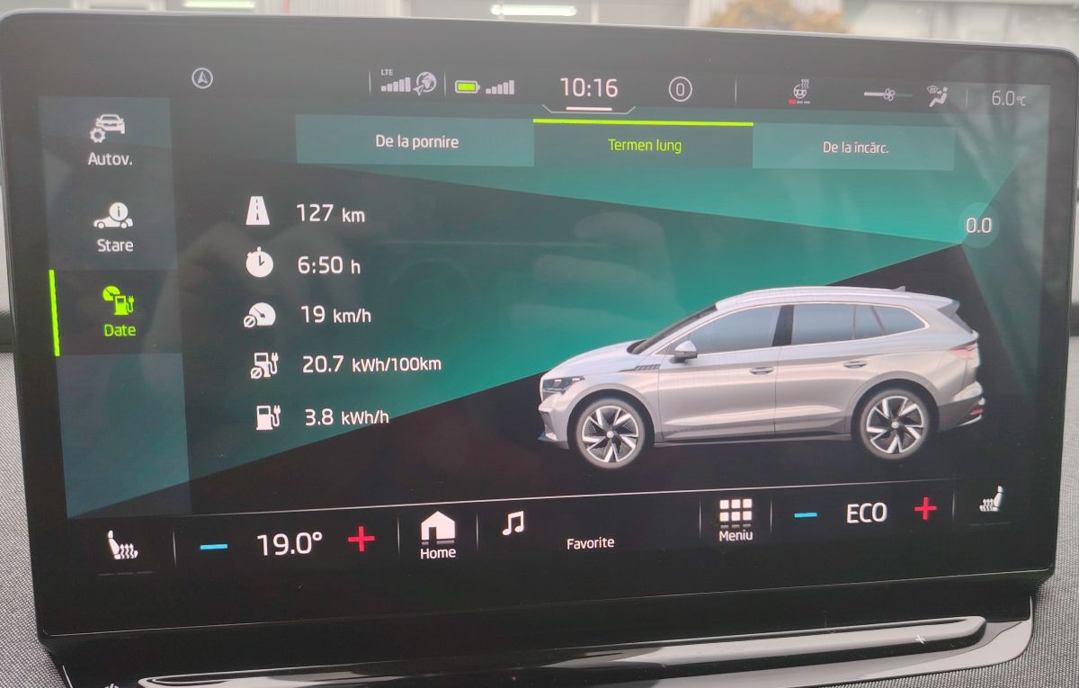 Cele doar câteva săptămâni cu parcurs mai mare sunt puțin înșelătoare, deoarece Alin a beneficiat de sprijinul dealerului Skoda din Oradea, care i-a pus la dispoziție un Enyaq pentru numeroase evenimente de promovare a mobilității electrice la care a participat.