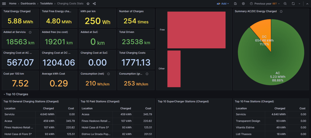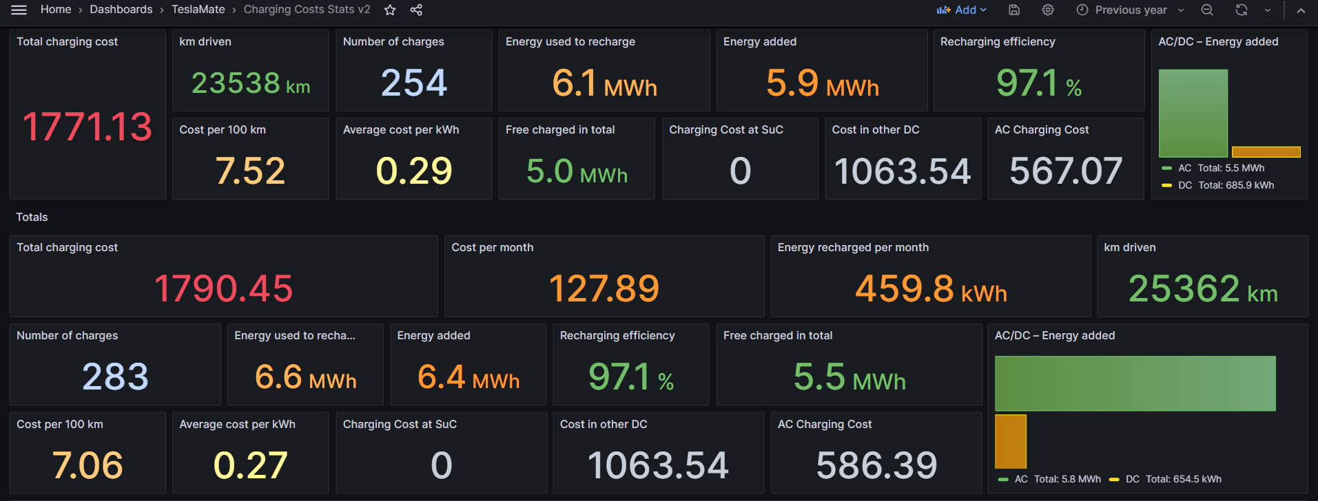 Cel din TeslaMate reflectă realitatea cel mai bine, întrucât poți seta costul pentru birou, acasă și restul.