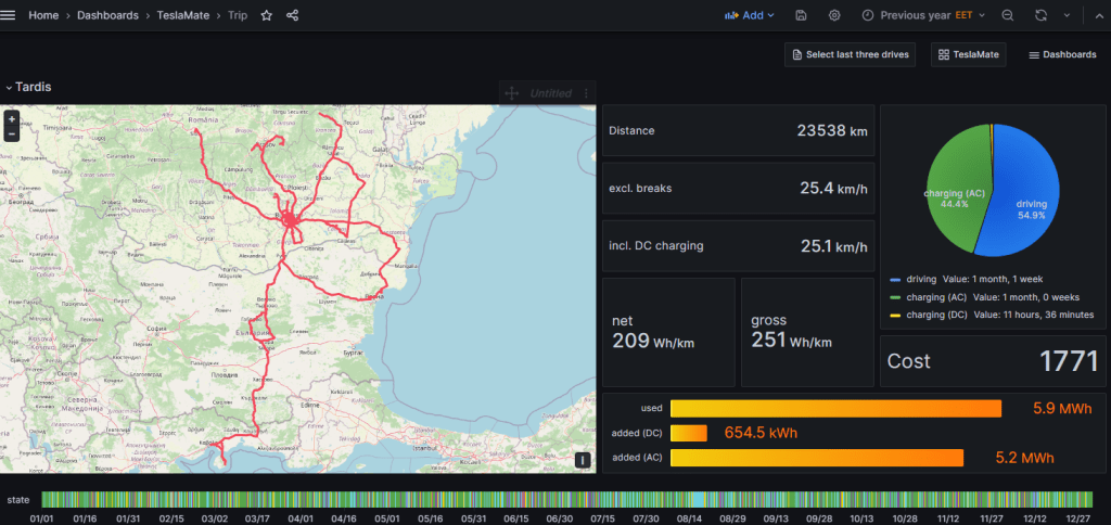 După primul an de traversări ale Bucureștiului cu Model Y, se pare că am petrecut/pierdut cel puțin cinci săptămâni la volan pentru 23.538 km, parcurși în cea mai mare parte cu naveta la serviciu.