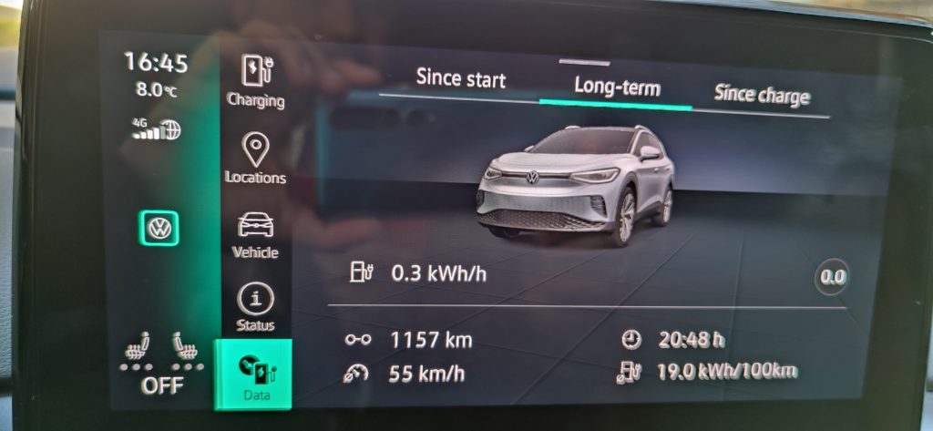Spre Muntele Mic am pornit din Timișoara cu 100% baterie, am parcurs autostrada cu 125 km/h, drumurile naționale cu viteză legală, iar la întoarcere am ajuns cu 15% acasă. Într-adevăr a fost mai cald decât în alte dăți, am avut parte de soare și nu am avut nevoie de încălzire o parte din drumul de întoarcere.