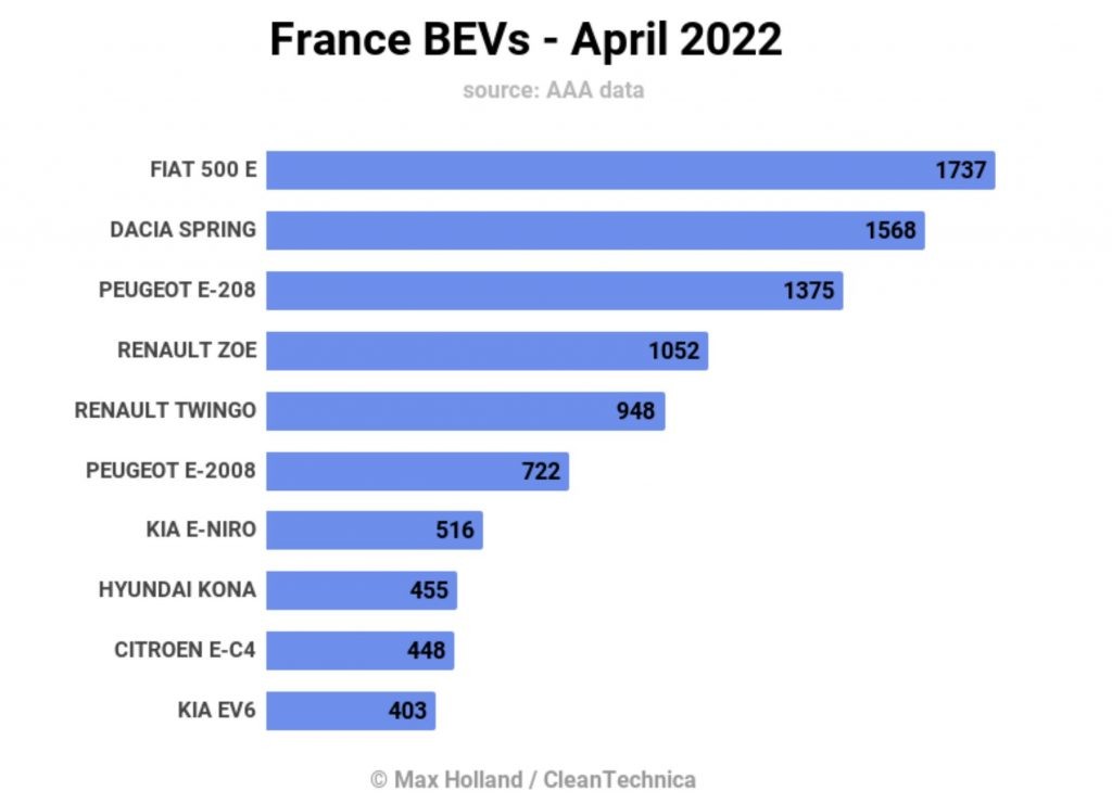 Faptul ca un model produs în Italia (Fiat 500e) și altul în China (Dacia Spring) au fost livrate în cantitate mai mare decât eroinele locale ZOE și 208, povestește volume despre dificultățile prin care trece industria auto franceză. Singurul numitor comun cu piața norvegiană sunt Niro și Kona, clasate și aici in Top 10.