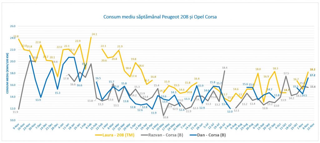 Odată cu achiziția electro-leului pentru Laura în aprilie 2020, la Timișoara a început monitorizarea săptămânală a experiențelor acumulate de proprietari alături de mașinile produse în Franța și Germania (Opel Corsa). Foarte apropiate la gabarit și cu specificații tehnice asemănătoare, alegerile colegilor noștri au acoperit întreaga gamă de modele și variante.