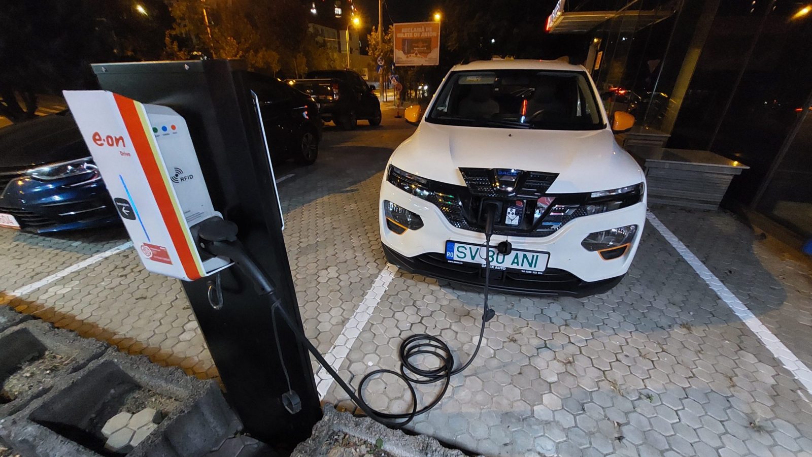 Noaptea, Springul a stat la încărcat pe Type2 la o stație e-on Drive lângă hotel, unde a încărcat 28 kWh contra a 57.41 lei. Dis-de-dimineața, mașina era încărcată 100% și bună de drum.