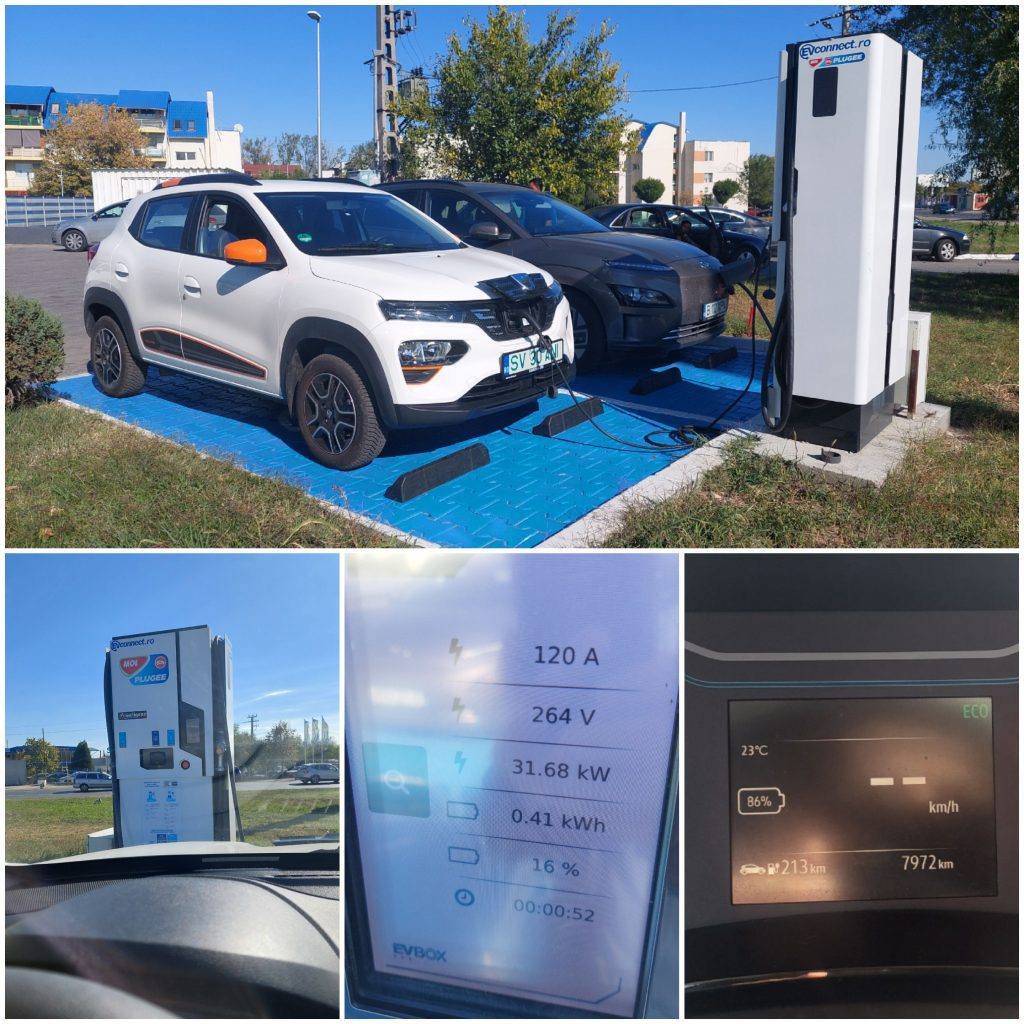 Nici de data aceasta n-am plecat cu bateria încărcată, ci chiar descărcată… 33%. Dar stațiile relativ apropiate de la Lespezi / Cristești / Roman mi-au oferit siguranță. Localități ca Pașcani sau Fălticeni… fără urmă de stații de încărcare.