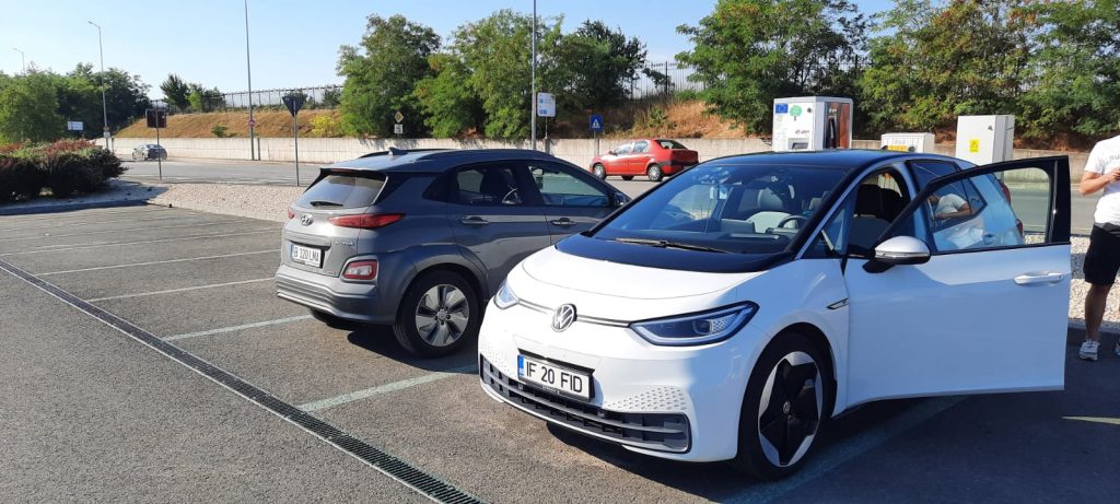 Eu, Cristi cu Tesla Model 3 LR, Cosmin cu ID.3 și Călin cu 140km/h pe autostradă. Am mers normal, fără probleme, fără emoții. La Constanța am ajuns cu 25% SoC. Pe A1, am aplicat aceeași rețetă, atât cât s-a putut (pe ultimii 3 km de autostradă am prin ambuteiaj – am stat cam 5 minute în aglomerația creată). Eu și astă iarnă am mers cu cu 130 pe CC până la Constanța. - Avantaj de 2-3 ore al termicei, pe un traseu de 1000km, prin România.