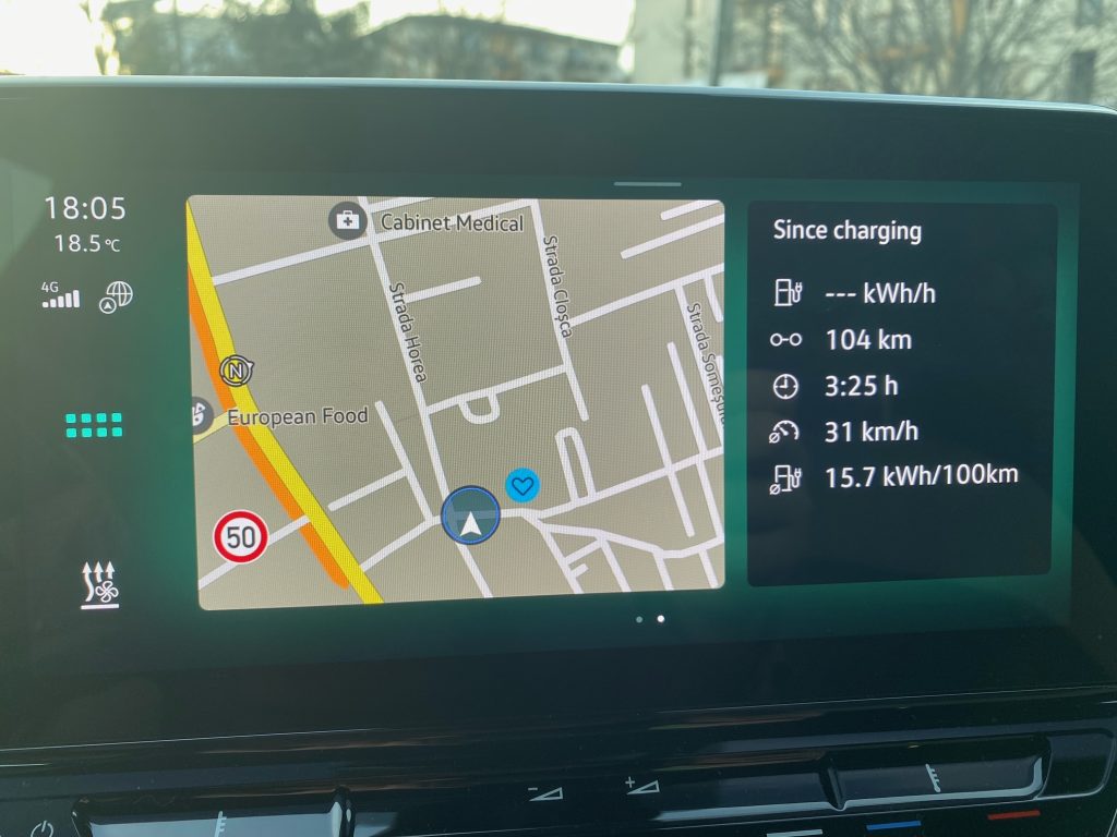 In plus, am vizitat zona Orșova și Drobeta, aproximativ 100 km cu consum mediu de 12.4 kWh/100km.