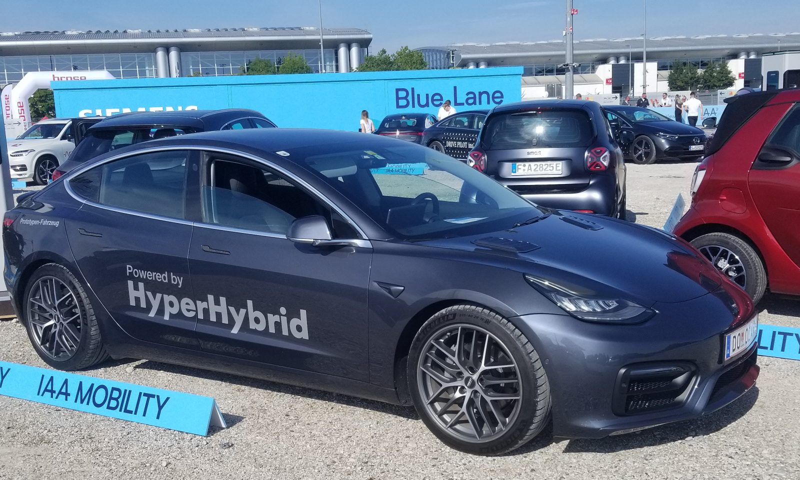 Din întâmplare, la revenirea din plimbarea în pas de melc cu covorul fermecat (BMW iX3) la IAA, am parcat lângă ceea ce părea să fie un Model 3, unul din foarte puținele prezente în complexul expozițional din München, unde Tesla nu a participat.