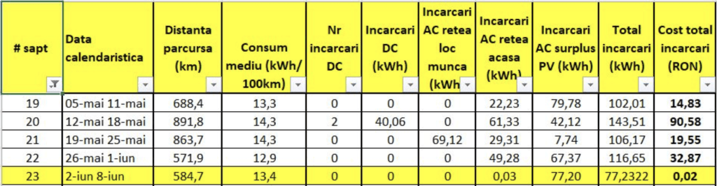 În săptămâna #23 am parcurs 584.7 km, la un consum mediu de 13.4 kWh/100 km.
