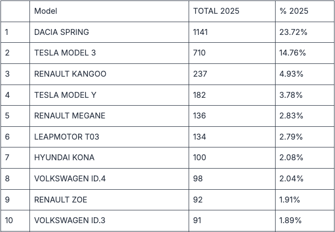 Totuși în top 10 pe anul 2025 vedem cum Renault Kangoo face o figură bună, cum de altfel o face și Renault Megane. Nu-mi e rușine nici cu Zoe, o mașină care nu se mai produce, dar care probabil prezintă stocuri de mașini SH suficiente.