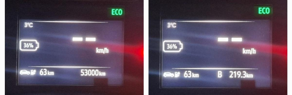 - Distanța parcursă: 220 km (53000 km – 100% SoC)
