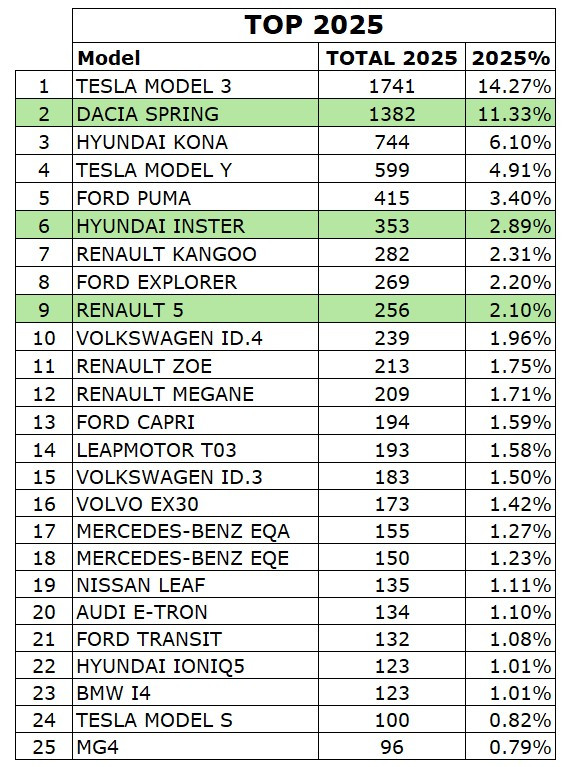 Cu toate bâlbâielile programului Rabla, Inster și Renault 5 au urcat direct în TOP 10 anul acesta, fiecare nou-venit reprezentând peste 2% din total înmatriculărilor din 2025.