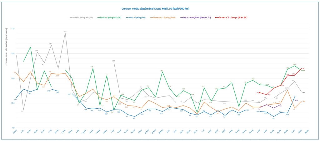 - consum: 19 kWh/100 km. Nu am folosit climatizarea prea mult, fără încălzire în scaune sau volan.