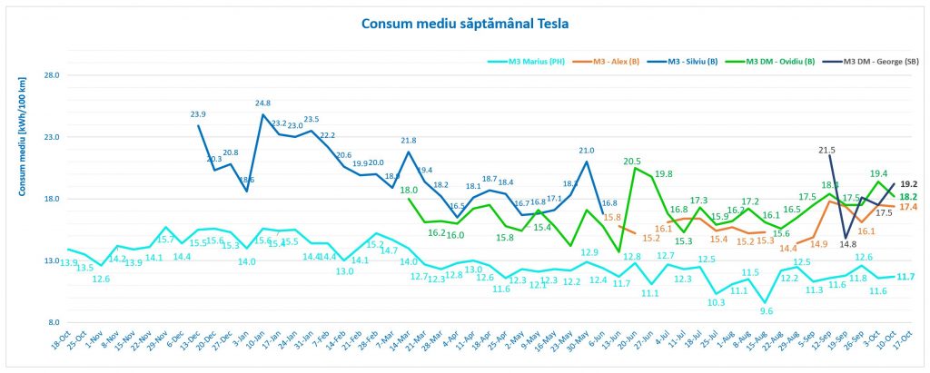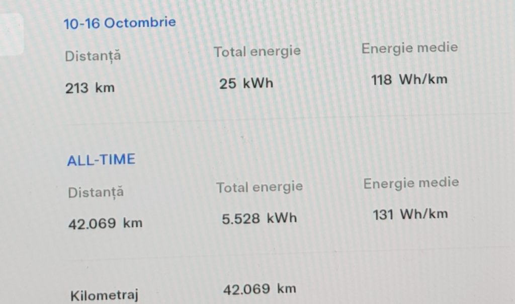În săptămâna 10-16 octombrie, Tesla Model 3 SR+ 55kWh, are următoarele date: