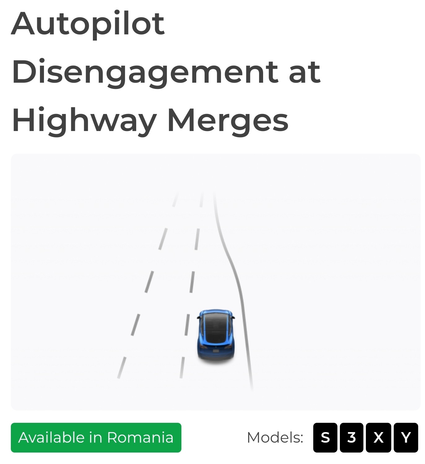 De acum, Autopilotul va indica o alertă și se va decupla atunci când vehiculul se apropie de finalul încadrării pe o bandă separată printr-un marcaj vopsit de separare a benzii și nu există o schimbare de bandă activă.