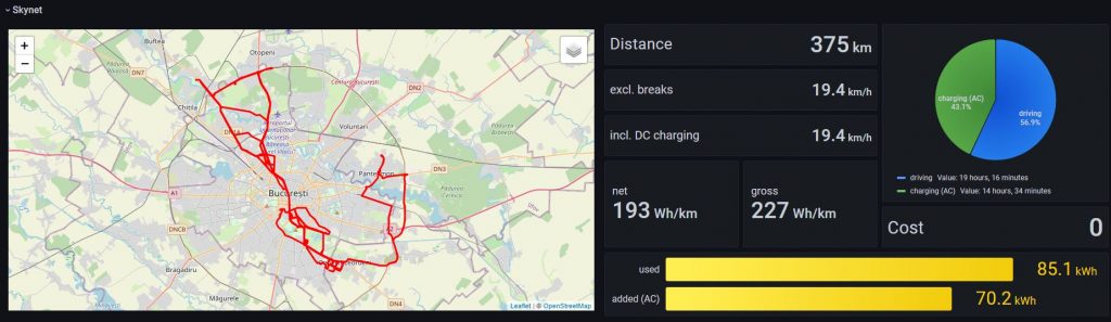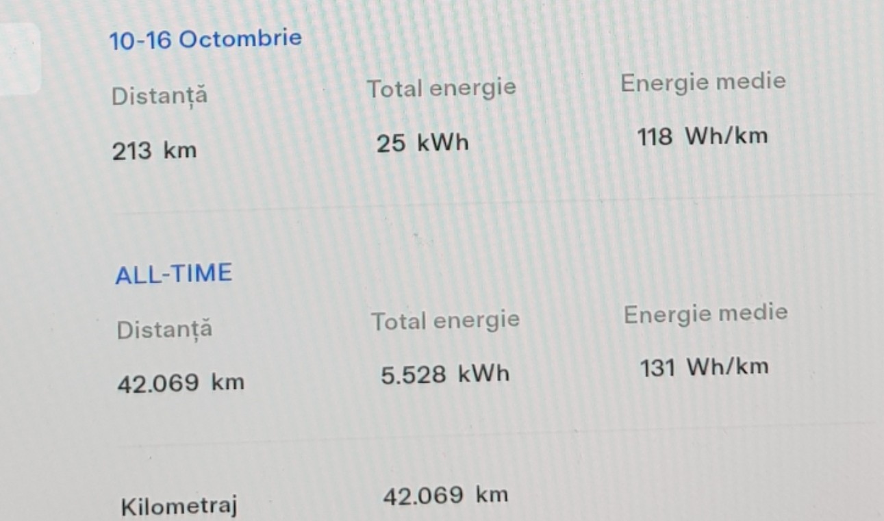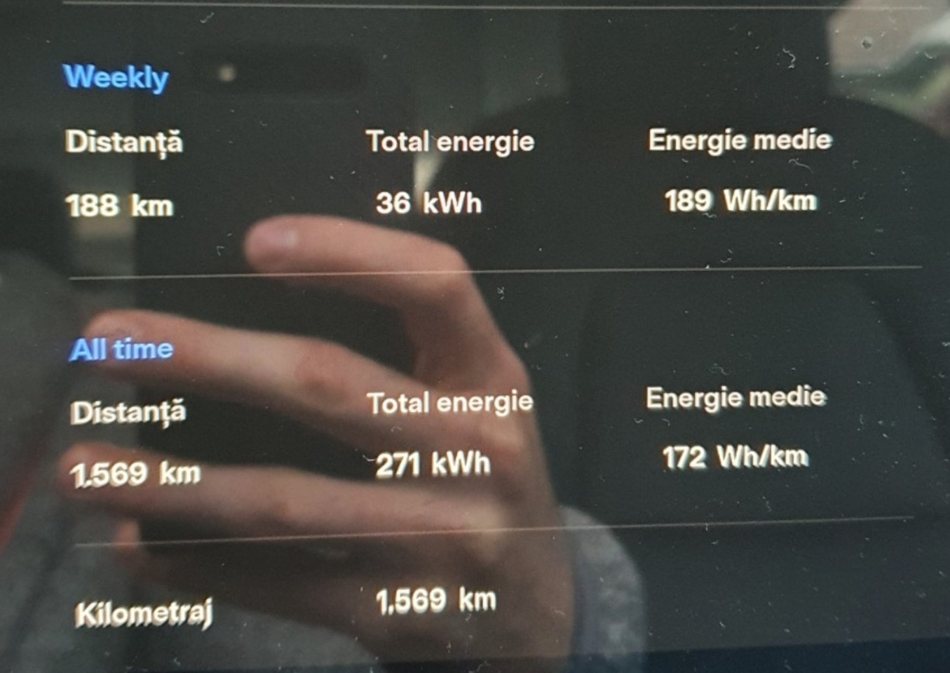 Săptămâna trecută am parcurs cu M3 DM 376 km, cu un consum mediu de 18,2kWh/100km și energie totală consumată 68 kWh. Drumuri exclusiv prin oraș cu viteza medie de 19,4 km/h.
