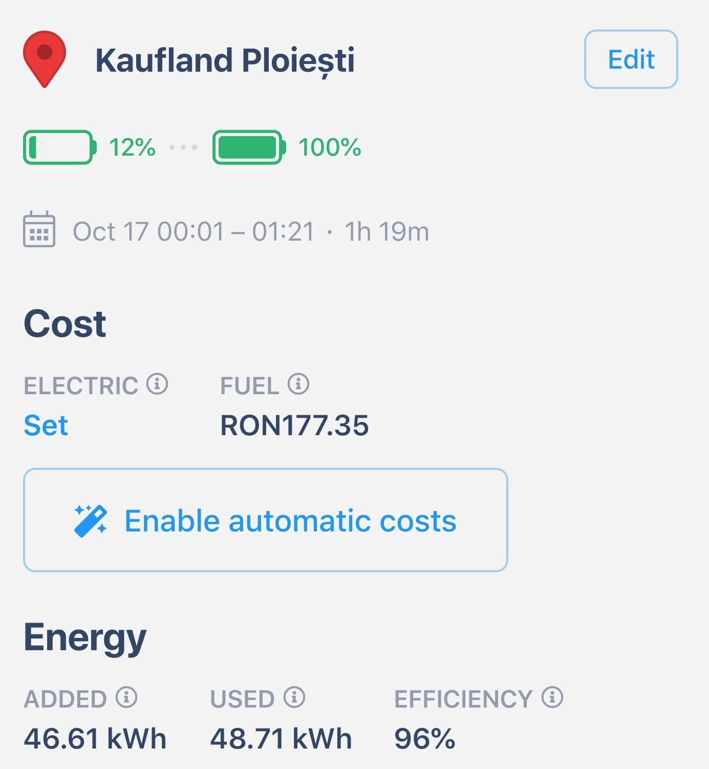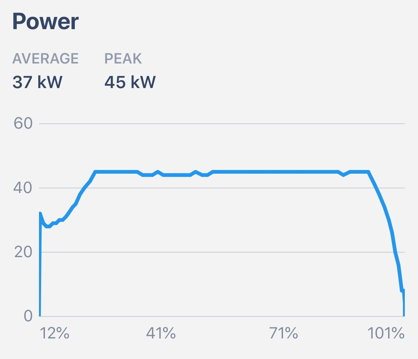 Odată cu scăderea temperaturilor, timpii de încărcare cresc ușor. În momentul în care mașina detectează încărcare rapidă, reduce puterea de încărcare și pornește automat condiționarea bateriei. După ce bateria ajunge la temperatura optimă, de obicei 10-15 minute, încărcarea va atinge parametrii cu care suntem obișnuiți pe timpul verii. Atașez graficul care arată comportamentul ultimei încărcări.