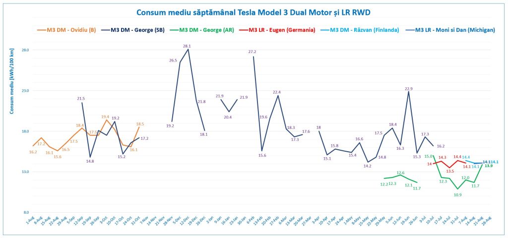 Cu precizarea că sub denumirea Long Range includem atât varianta mai bine cunoscută Dual Motor, dar și pe cea mult mai rară cu tracțiune spate (RWD), să vedem ce informatii ne transmit utilizatorii din România, Finlanda și SUA pentru săptămâna trecută.