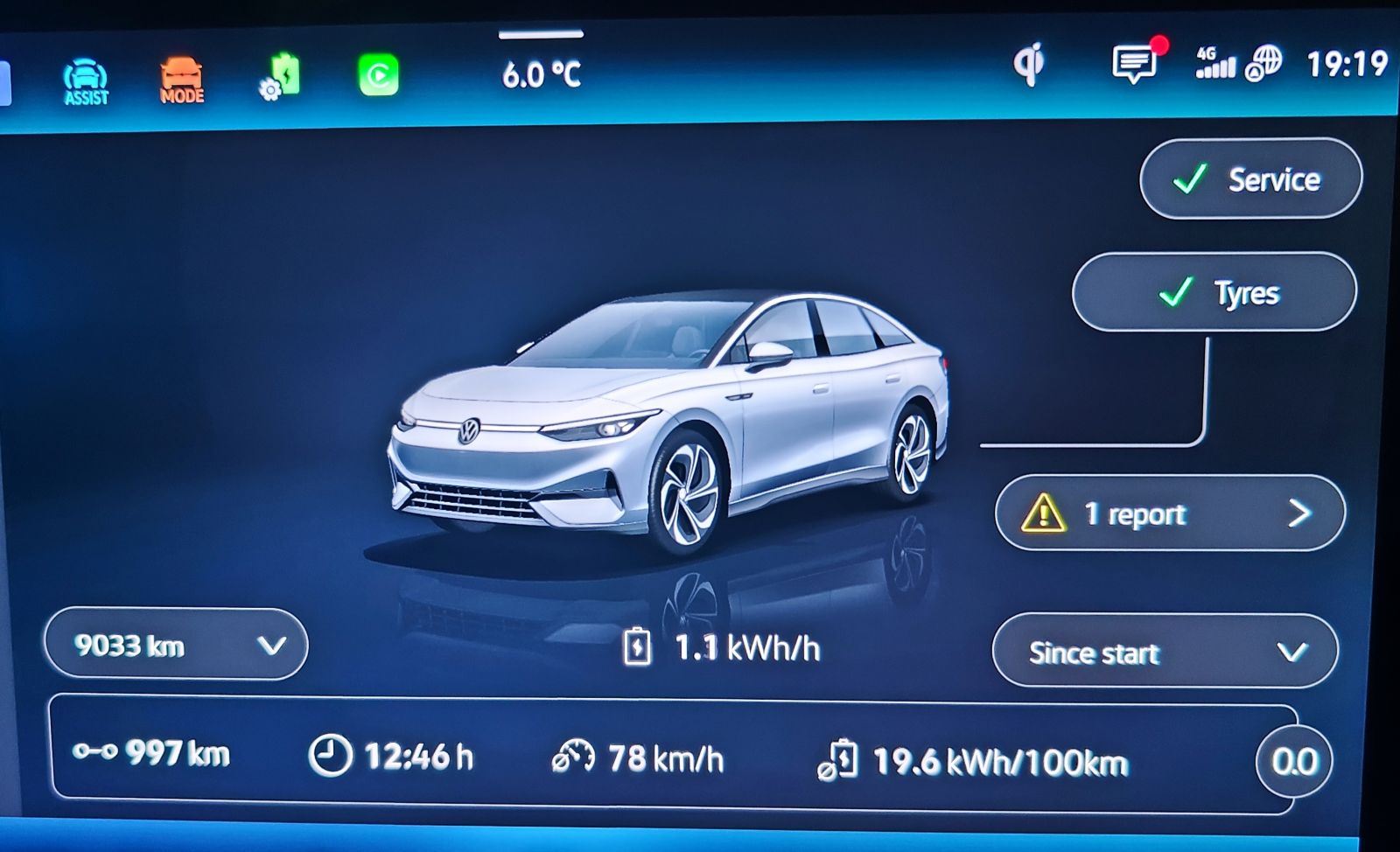Mașina s-a comportat impecabil. Am avut un timp total de condus de 12 ore 46 minute, cu un consum mediu de 19,6 kWh/100 km.