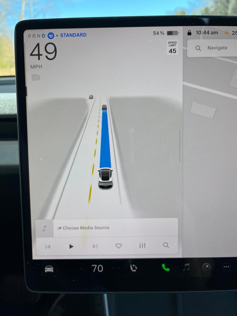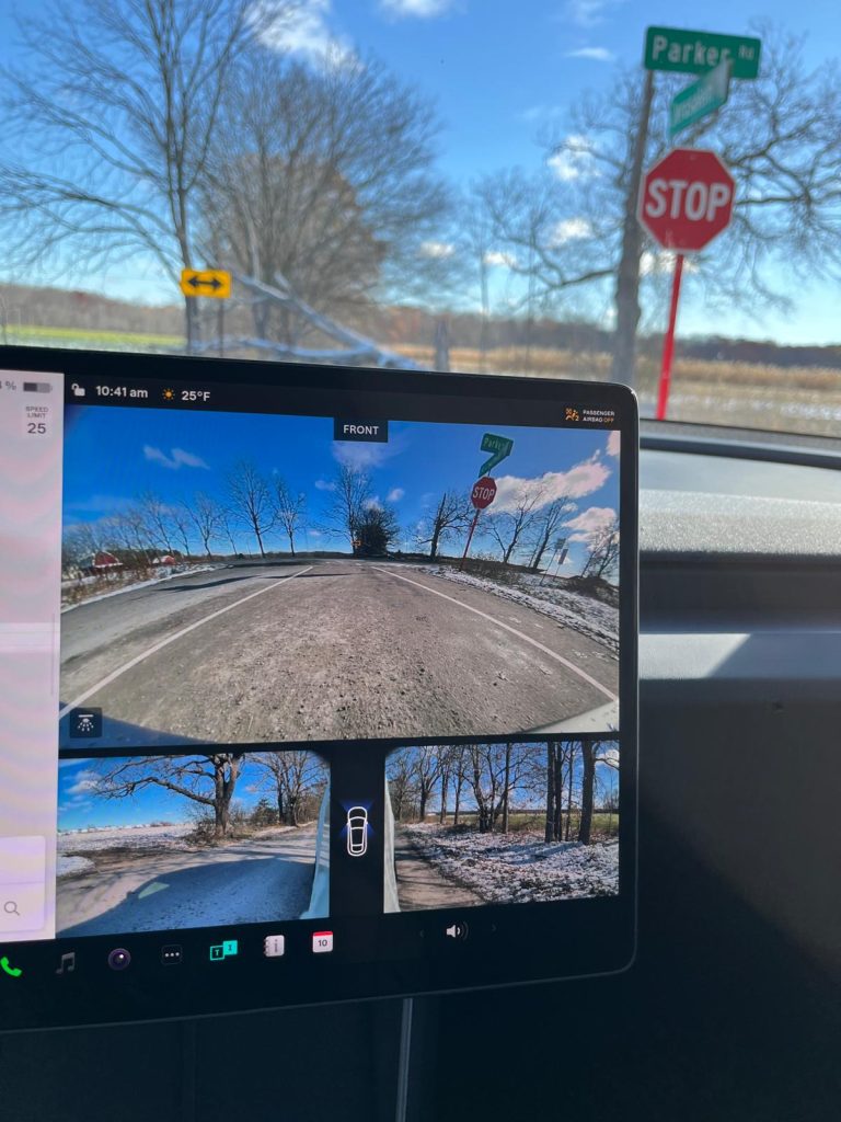Dar cea mai bună experiență, pe parcursul celor 60 min cât am avut mașina la dispoziție, a fost conducerea autonoma (FSD) extrem de lină și imaginea oferită la bord de camerele mașinii.
