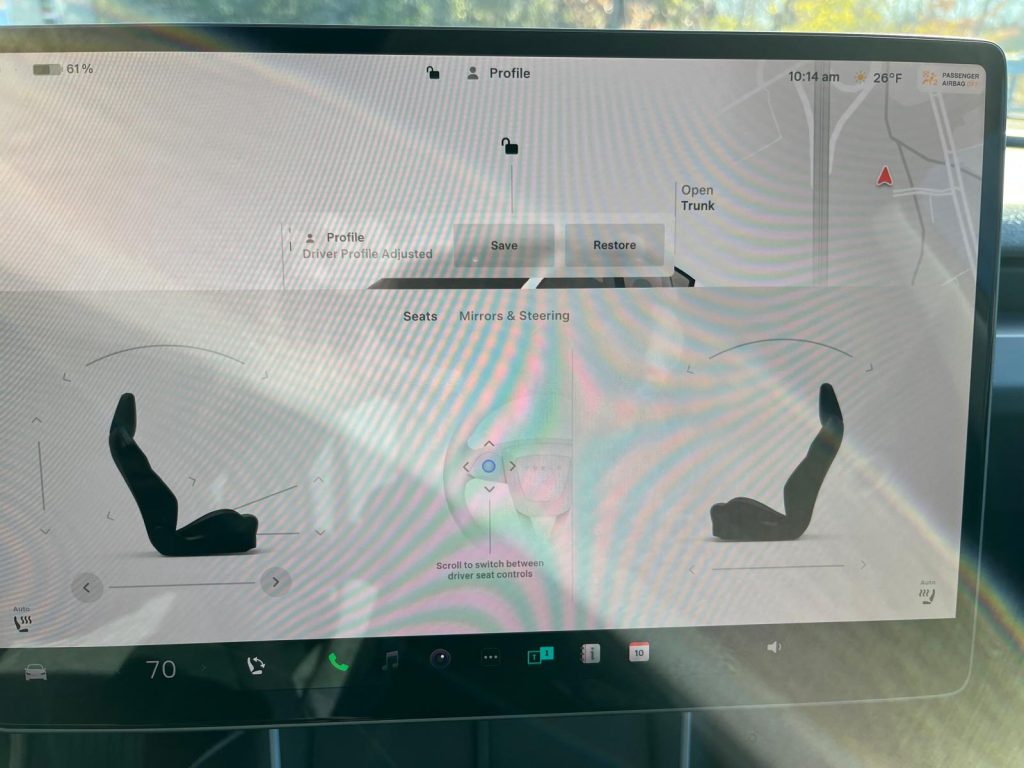 Prima surpriză a fost la ajustarea scaunului… pe care am găsit-o pe ecran.