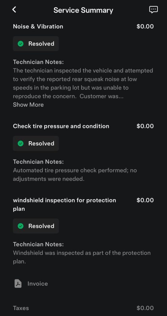 Ca urmare, „vizita în service” s-a încheiat rapid, cu o programare ad-hoc oricând apare din nou zgomotul, la orice service Tesla.