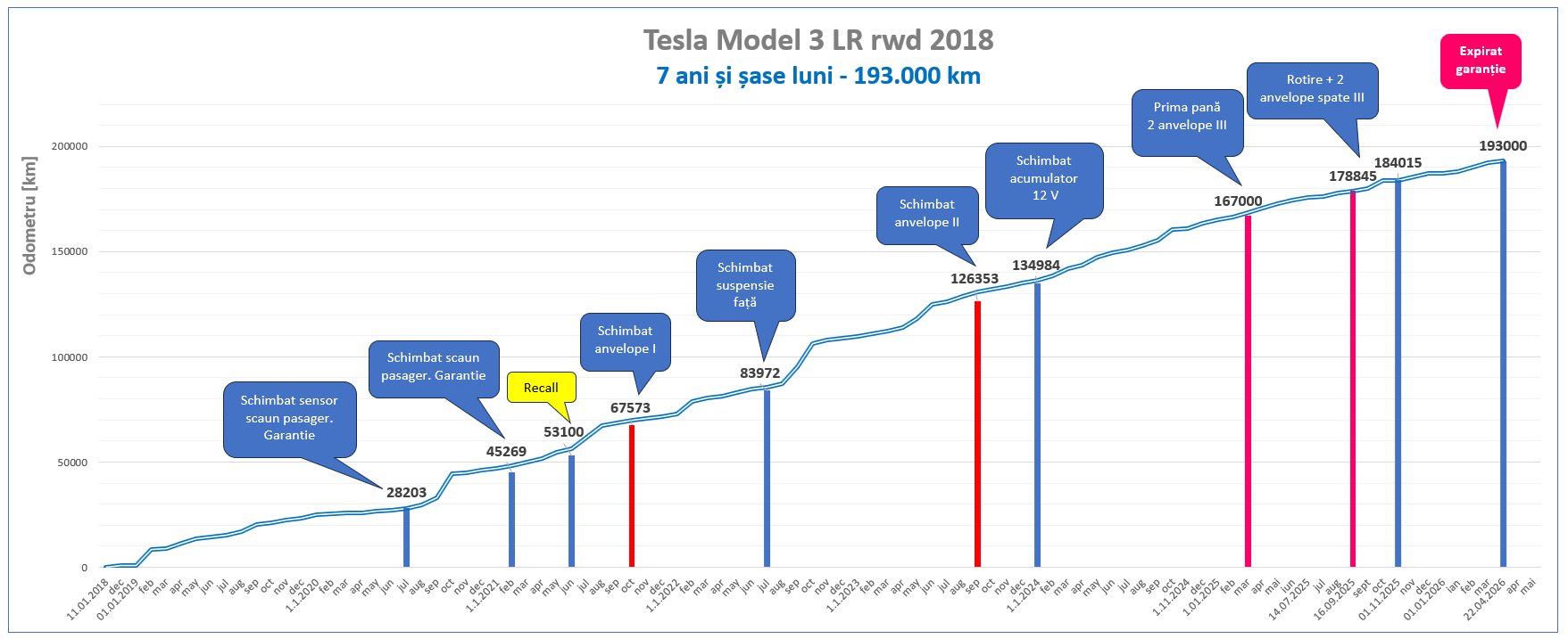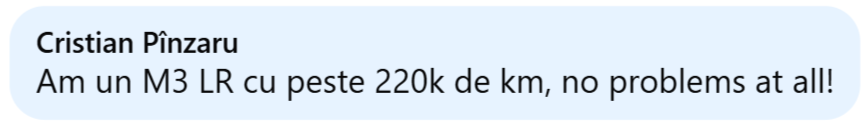 - In plus, fostul nostru coleg Cristian (Iași), după ucenicia cu Spring, a achiziționat un Model 3 rulat, despre care ne informează că odometrul a trecut în prezent de 220.000 km.