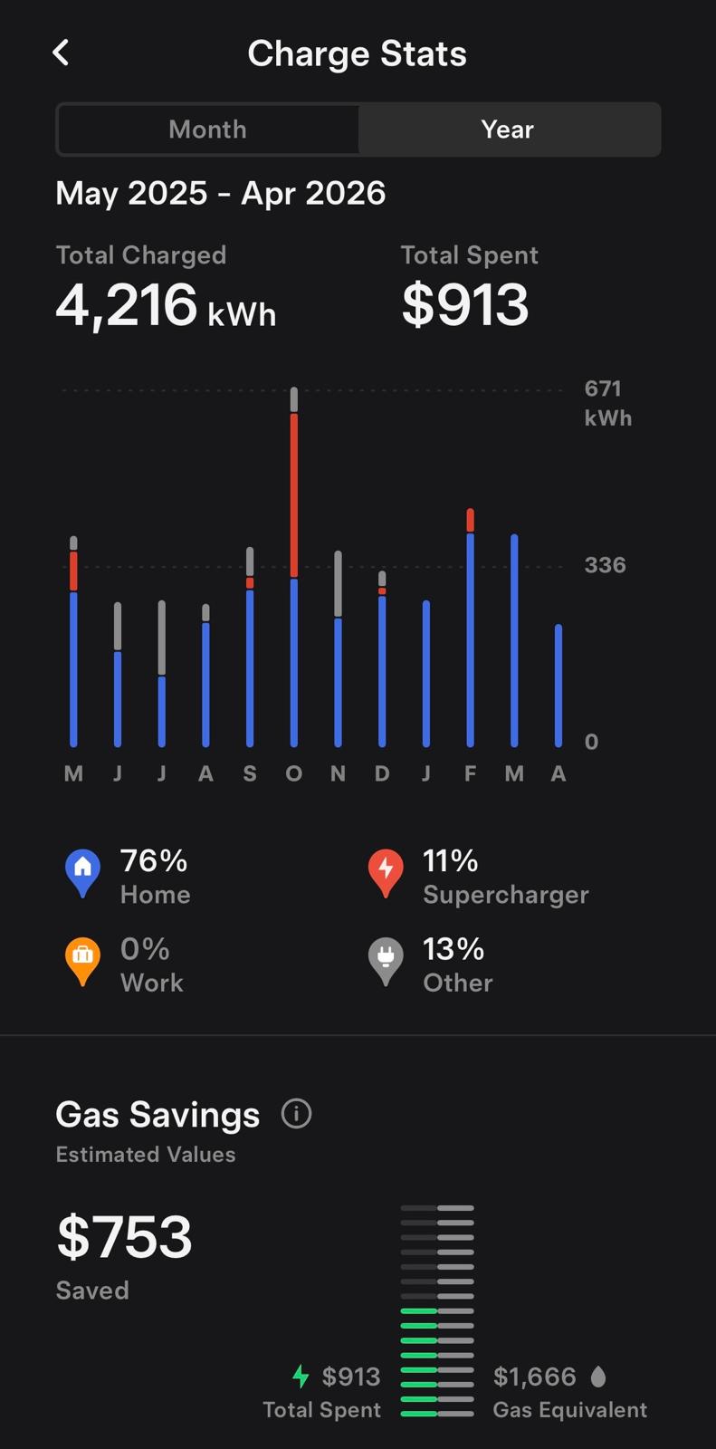 În plus, aplicația Tesla ne informează că în ultimul an am economisit 753 USD încărcând în proporție de 76% la priza casnică din garaj cu tariful redus de noapte. Nu-i rea de loc o economie de 45,2% pentru un an cu prețuri normale la benzină. Să vedem ce ne va comunica în următoarele luni…