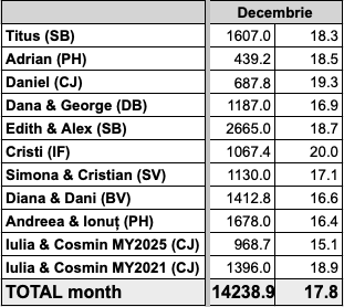 - energie încărcată: 173 kWh (75% ne-a rămas pentru 2026)