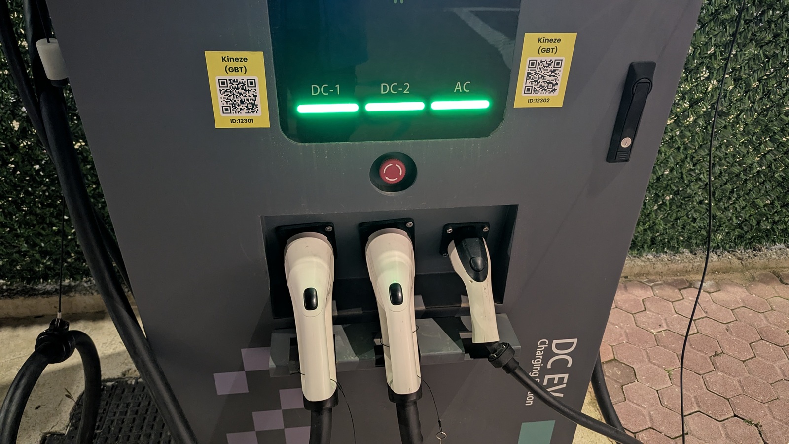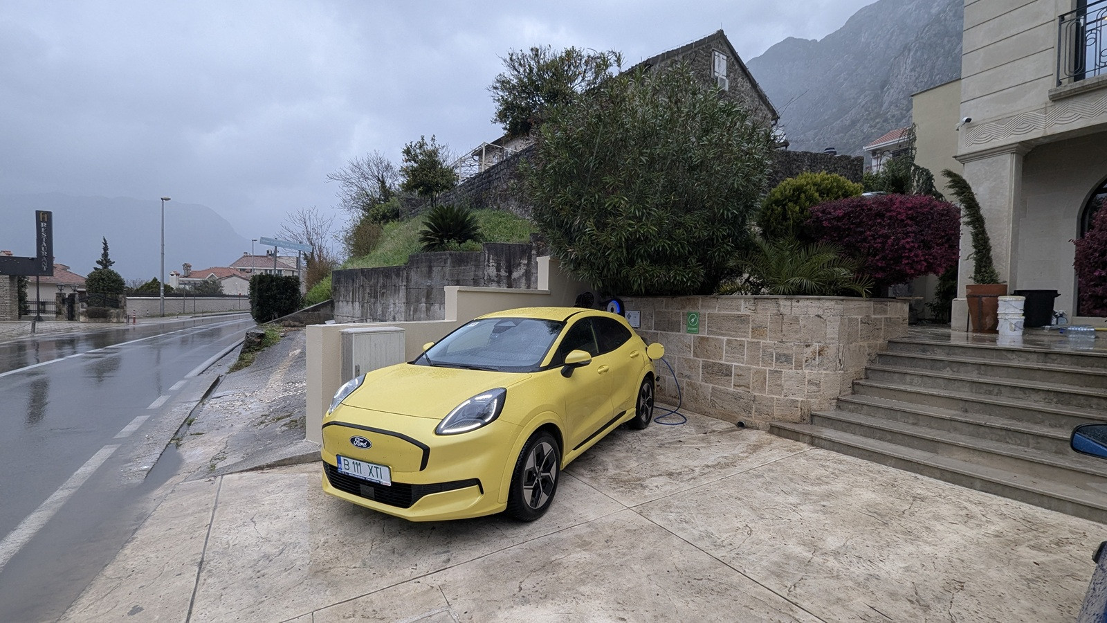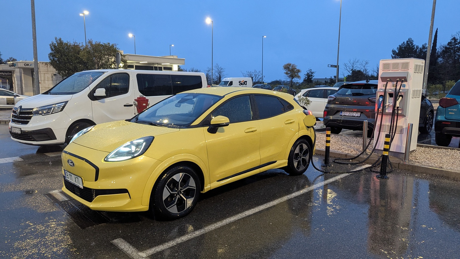 Pentru încărcare am ales un popas înainte de Tirana, într-o benzinărie foarte mare și modernă, care avea și restaurant și stații puternice de încărcare (200 kW). Cum în Albania sunt foarte multe mașini din China (variate ca mărimi, forme și tipuri de propulsie), stația de încărcare avea și porturi pentru standardul chinezesc.