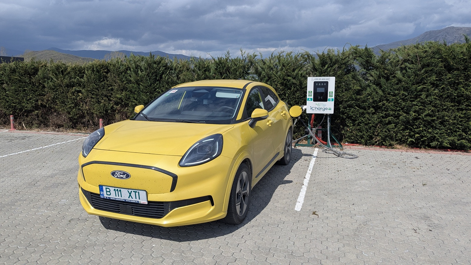 Nici încărcarea nu a fost mai plăcută, stația aleasă fiind de 22 kW AC, așa că am încărcat până la 50% și am pornit spre locuri cu mai puțină ploaie.