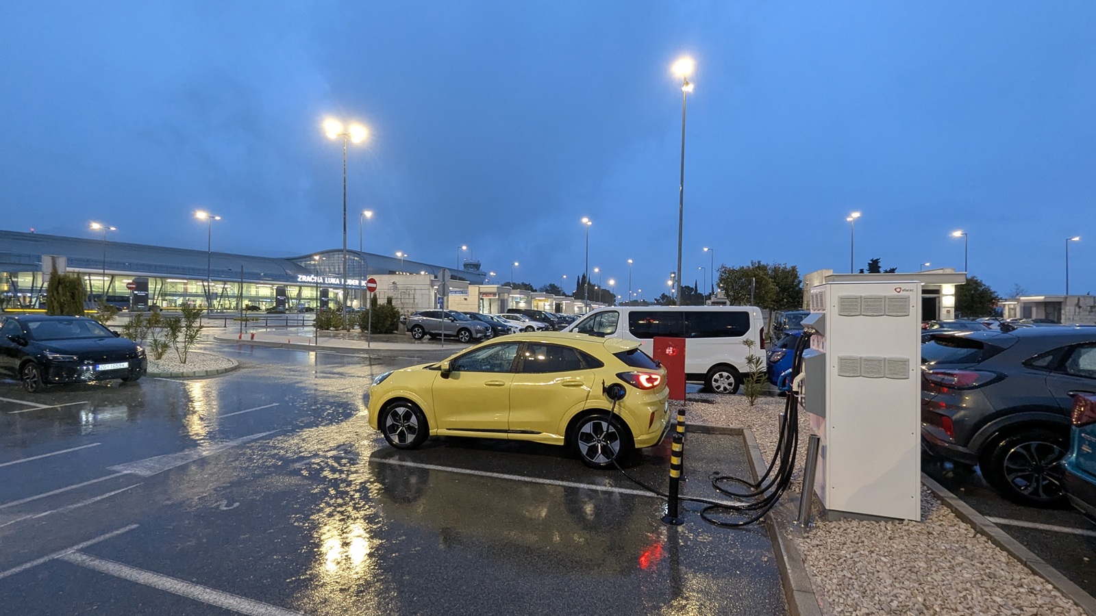 După un ocol complet al Golfului Kotor, m-am îndreptat către Croația, unde vremea se anunța ceva mai bună. Următoarea încărcare planificată era la stația gratuită (!) de la aeroportul Dubrovnik – ploaia se oprise și au ieșit două poze foarte interesante cu lumina de la apusul înnorat.