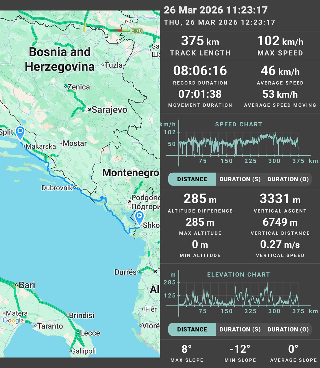 Ziua s-a încheiat la Shkodër, la o pensiune cu vedere faină asupra râului și orașuilui. Rezumatul în cifre a arătat 441 km parcurși, cu viteza medie de 48km/h.