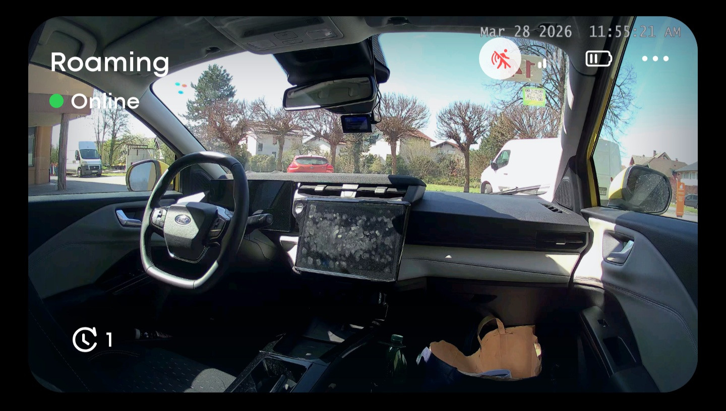 Pentru cei pasionați de tehnologia camerelor video – am avut mereu montată în mașină, prinsă de tetiera scaunului din dreapta, o cameră de supraveghere pe care am folosit-o pentru a le arăta celor interesați imagini ”în direct” de pe drum (aveau instalată aplicația și le dădusem permisiuni de acces).