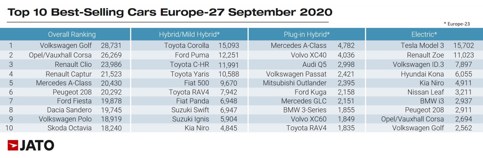 Aceste modele „hibride” au acaparat aproape 50% din totalul celor electrificate. 25% au fost plug-in hibrid (PHEV) și 25% au fost pur-electrice, adică BEV.