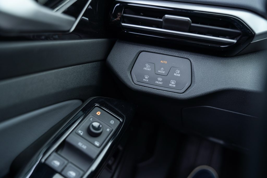 În utilizare zilnică, ID.4 se dovedește practic, cu o configurare convenabilă pentru familie – chiar dacă detaliile ergonomice nu au fost complet rezolvate. Singurul lucru pe care l-am apreciat la acest capitol a fost cotiera individuală pentru cele două locuri din față. Știu că majoritatea oamenilor o critică și nu sunt fani ai stilului acesta care aduce puțin a campervan, dar pentru poziția mea la volan a fost una din puținele mașini pe care le-am condus în care am ținut volanul confortabil cu ambele mâini sprijinite pe ceva. Și când vine vorba de un drum de peste 14h la volan, se simte mult asta.