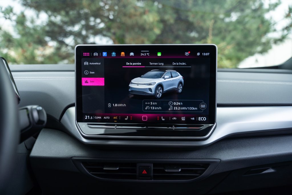 La stilul de condus relaxat, ID.4 se simte stabil și sigur, cu zgomot redus la viteză de autostradă. Sistemele de siguranță și asistență funcționează discret, iar ESP-ul intervine predictibil atunci când este nevoie. Chiar dacă nu aduce senzații speciale, ID.4 rămâne o alegere rațională pentru cei ce preferă versatilitatea și predictibilitatea unui SUV electric bine pus la punct.
