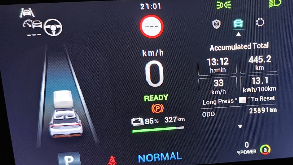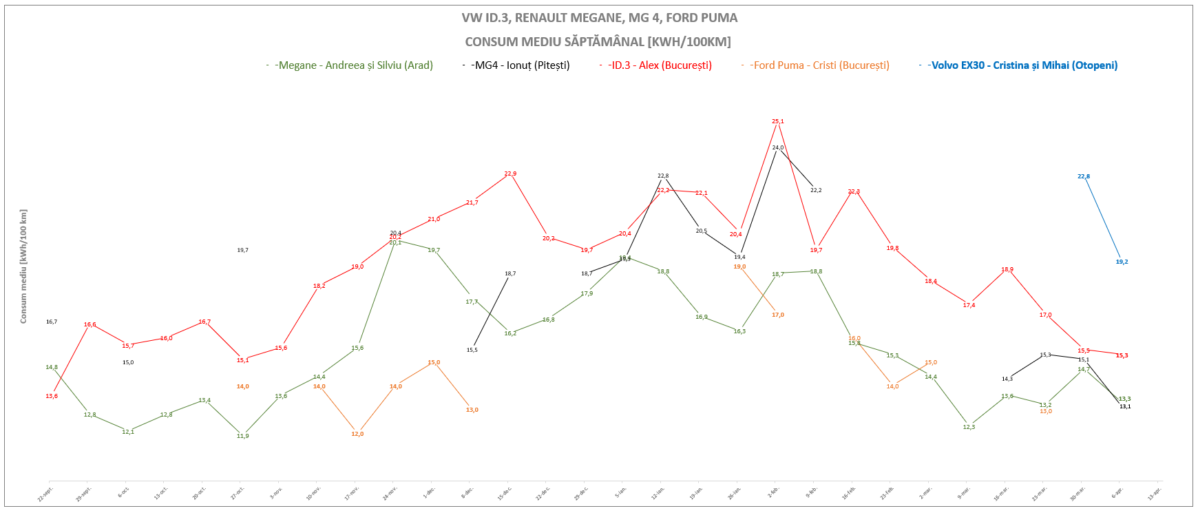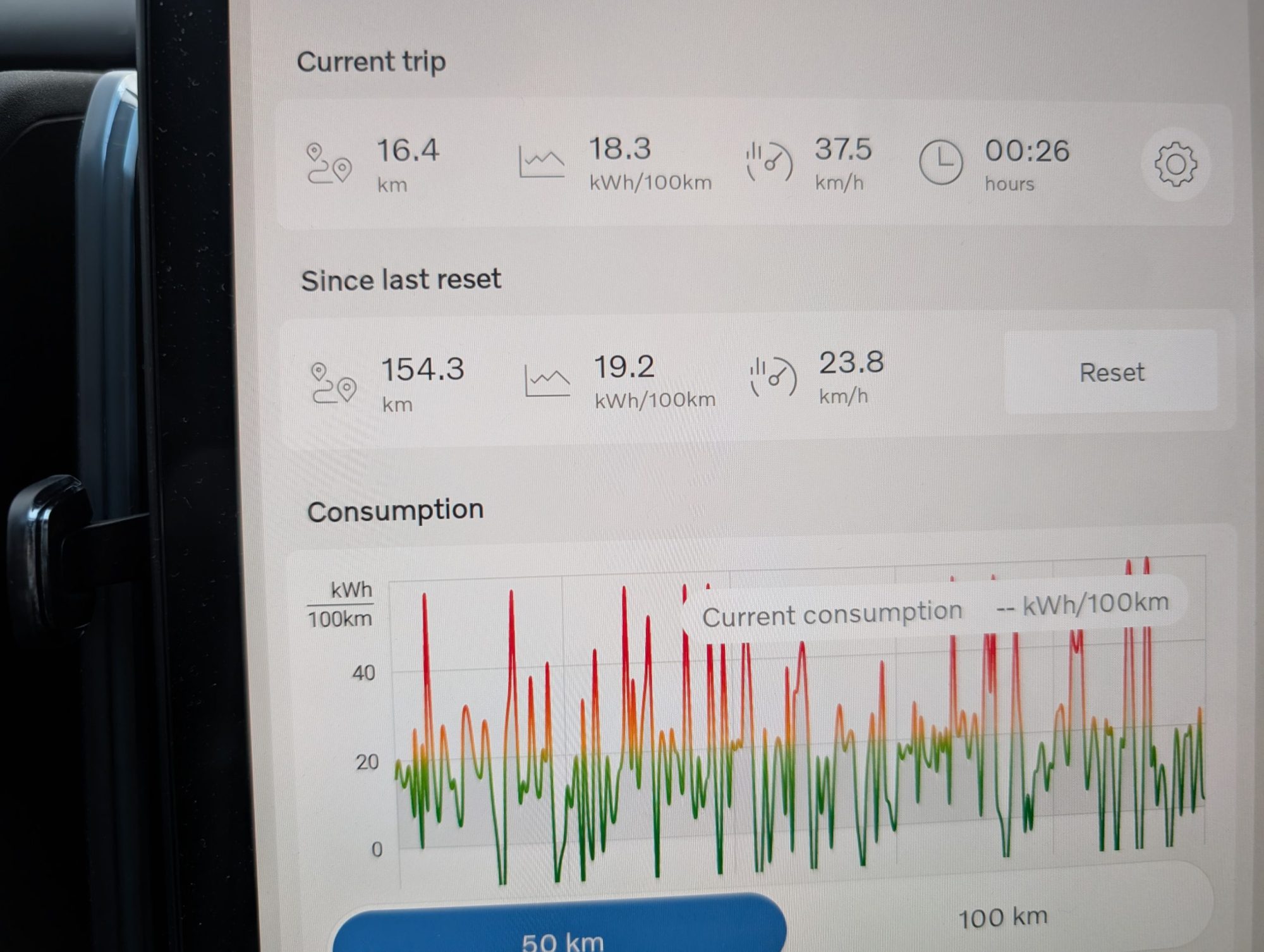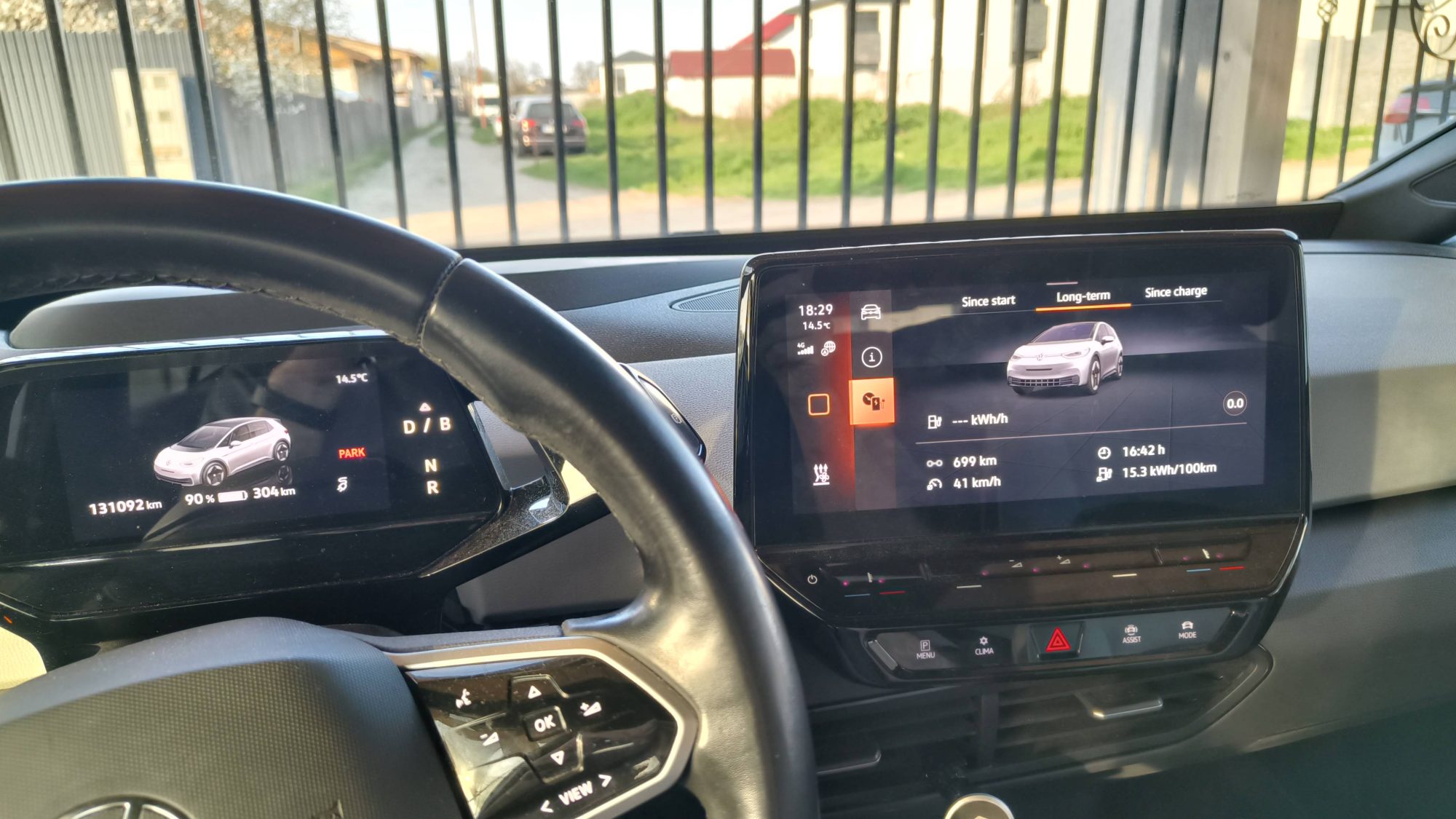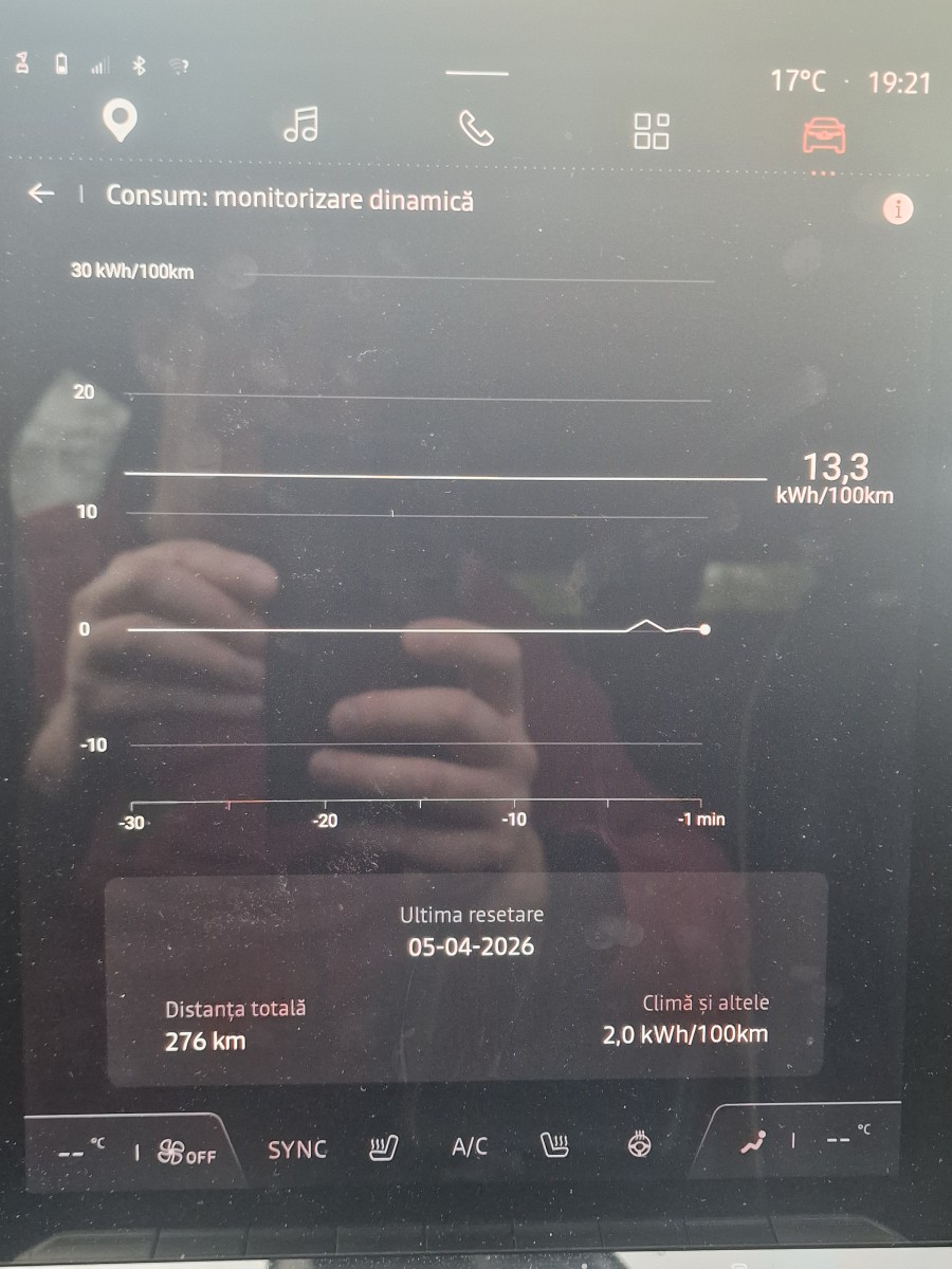 În perioada 6-12 aprilie am parcurs 699 km cu un consum de 15.3 kWh/100km, cu un parcurs 33%/33%/33% autostradă, drum național, oraș.