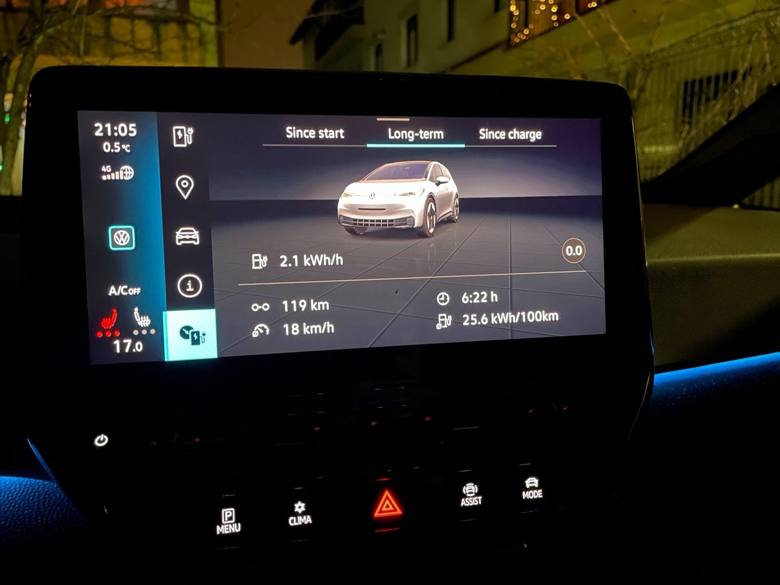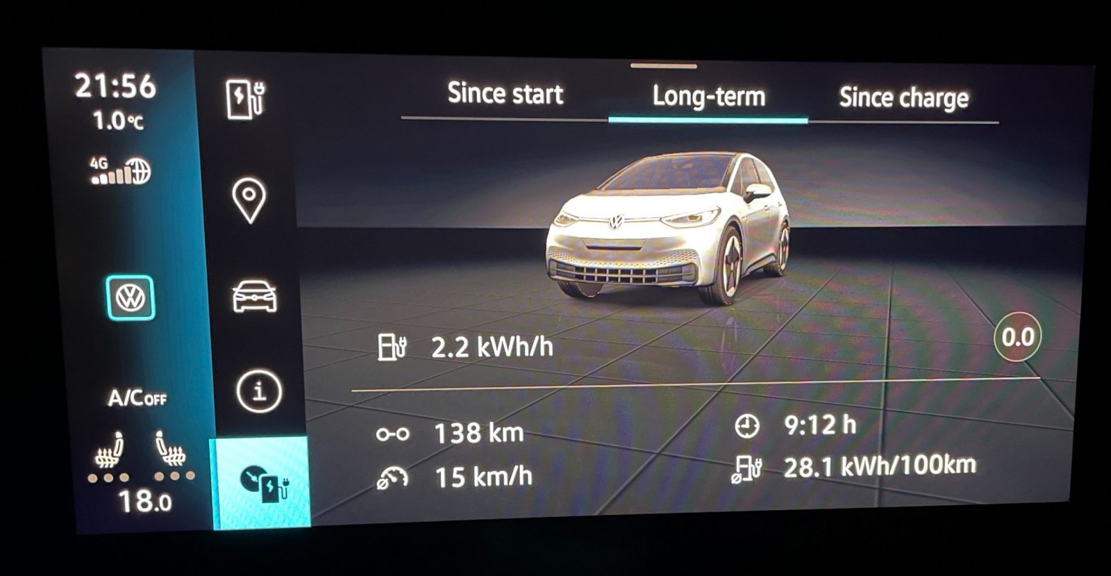 100 km i-am făcut intenționat pe autostradă la 90 km/h fără climatizare, doar încălzire pentru scaunul șoferului și volanul încălzit, îmbrăcat normal plus geacă. Consumul a fost 15.8-16 kWh/100 km dar drumul a fost, evident, ușor incomod. Consumul mult mai bun, dar raportat la viteză și lipsa de accelerări bruște, mi se pare tot mare.