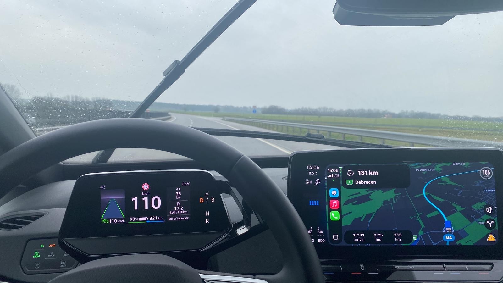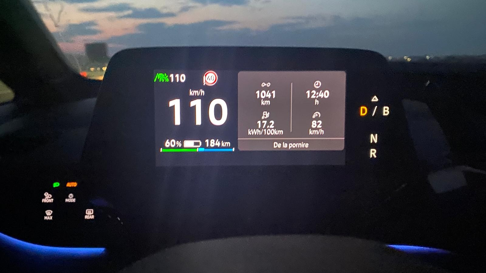 - De la 100% la 0, se pot parcurge 300-303km (testat, conducând de la 100% până la 6% SOC). Asta înseamnă, că la 17.7kWh/100km raportați în bord, bateria utilizabilă este de max. 53 kWh.
